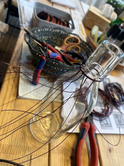 ♥ Na kurzu se naučíte základní techniku, jak vyšperkovat láhev pomocí drátu a dozvíte se také základní informace o veškerých používaných materiálech. Pracovat budeme s měděným drátem různých průměrů a také tradičními českými korálky.