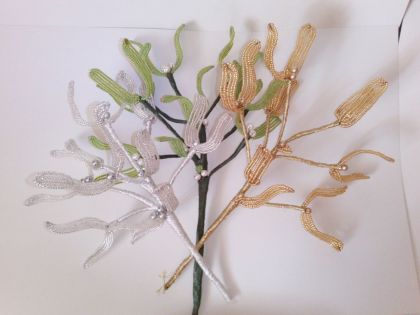 Na kurzu si ukážeme jakou technikou a z jakých korálků si můžeme jmelí vyrobit a jaký používat drát. Ukážeme si také, jak doladit stonky, aby byly jako živé a celé větvičky si tak zkomletujeme.