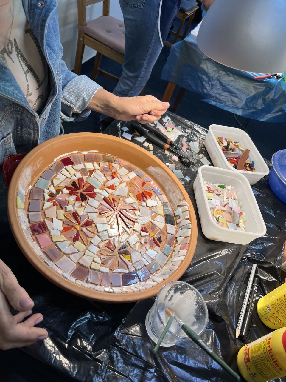 ♥ Délka kurzu je přibližně 7-8 hodin, doporučujeme si s sebou vzít oběd nebo svačinku (k dispozici je mikrovlnná trouba). Také doporučujeme oblečení, které se nebojí skleněných střípků a také se pravděpodobně ušpiní při spárování mozaiky.