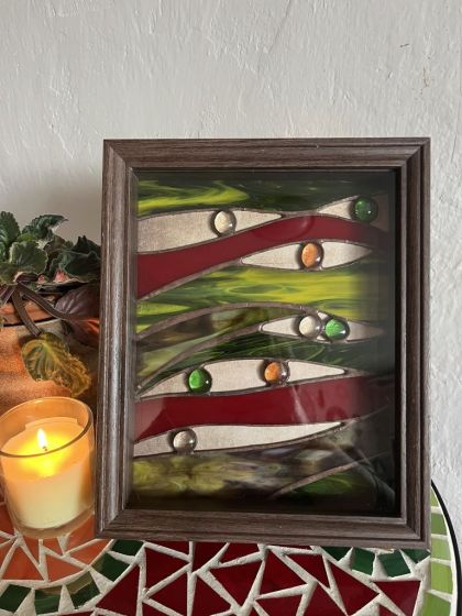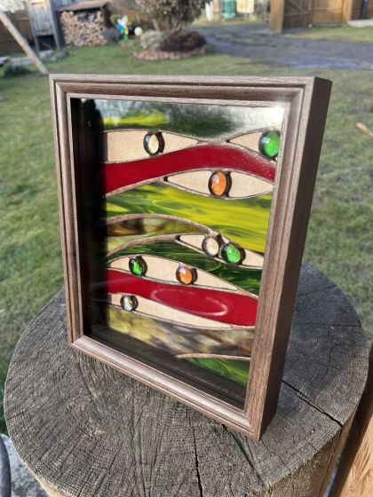 • Na kurzu si z barevných vitrážových skel vyrobíme OBRÁZEK V DŘEVĚNÉM RÁMEČKU dle vlastního návrhu.
