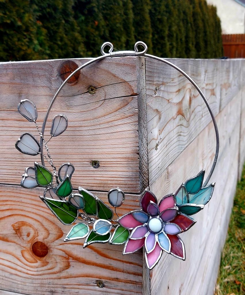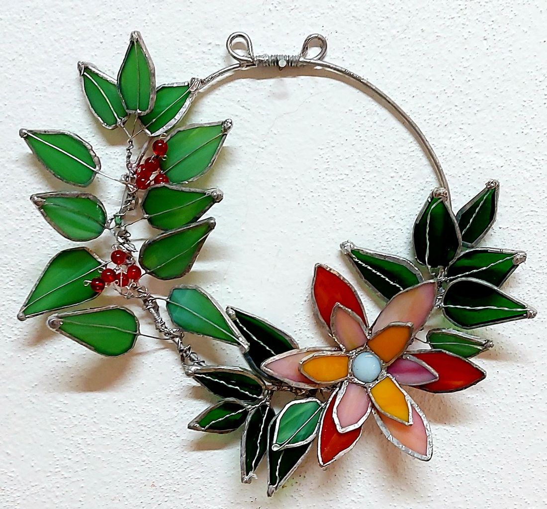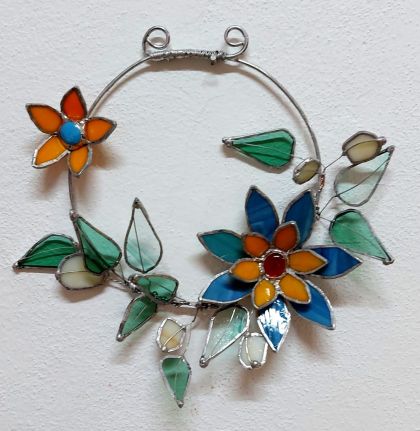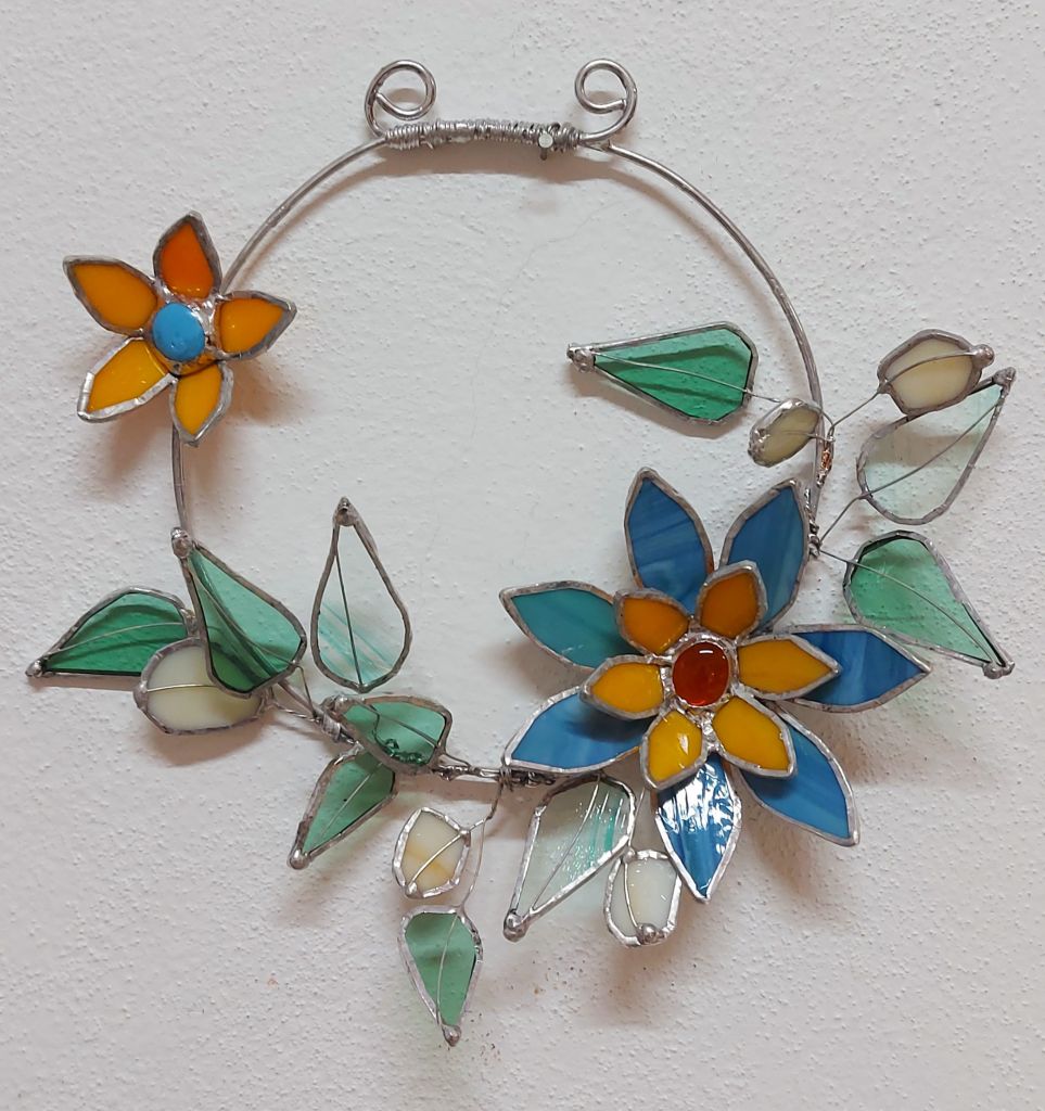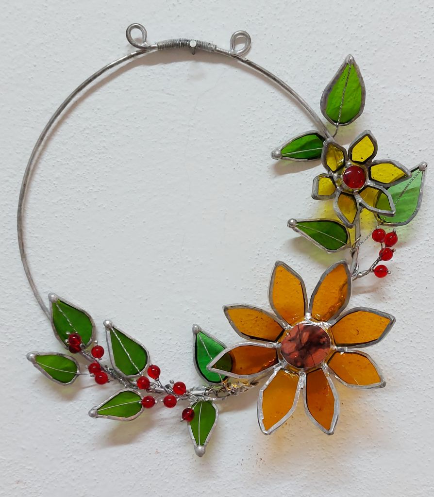 ♥ Na kurzu si z barevných vitrážových skel vyrobíme VITRÁŽOVÝ OBRÁZEK VE DŘEVĚNÉM PODSTAVCI (lze využít i jako svícen) nebo VĚNEČEK s 3D KVĚTEM o průměru cca 20 - 30 cm dle vlastního návrhu.