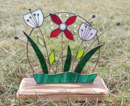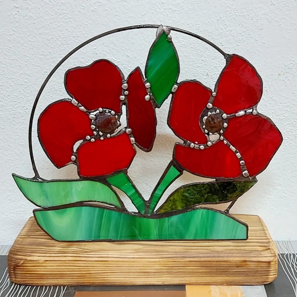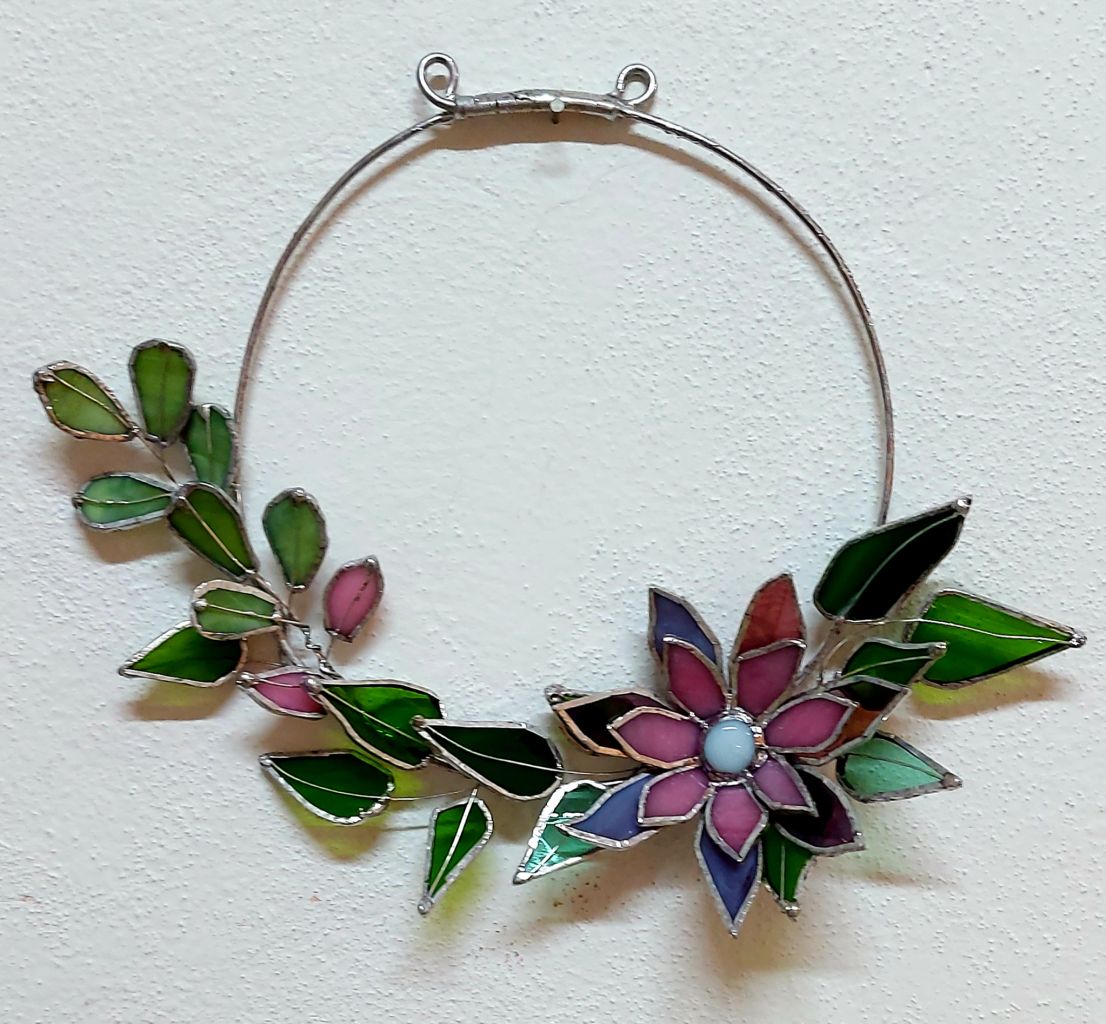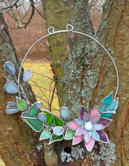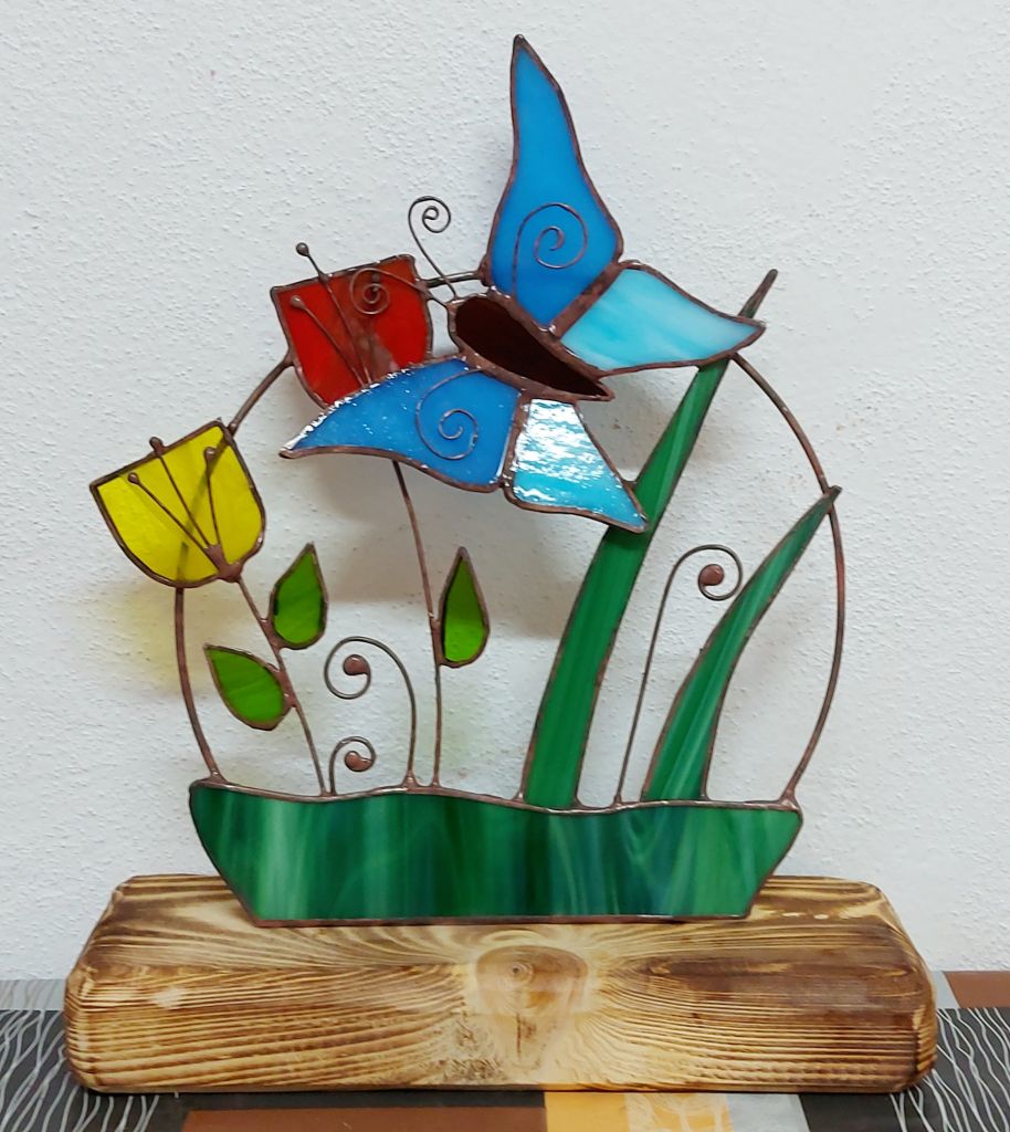 ♥ Na kurzu si z barevných vitrážových skel vyrobíme VITRÁŽOVÝ OBRÁZEK VE DŘEVĚNÉM PODSTAVCI (lze využít i jako svícen) nebo VĚNEČEK s 3D KVĚTEM o průměru cca 20 - 30 cm dle vlastního návrhu.
